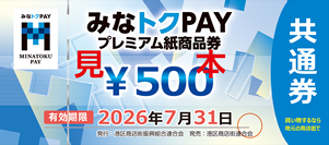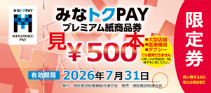 期間限定で発行しているプレミアム付きの「みなトクPAYプレミアム紙商品券」と